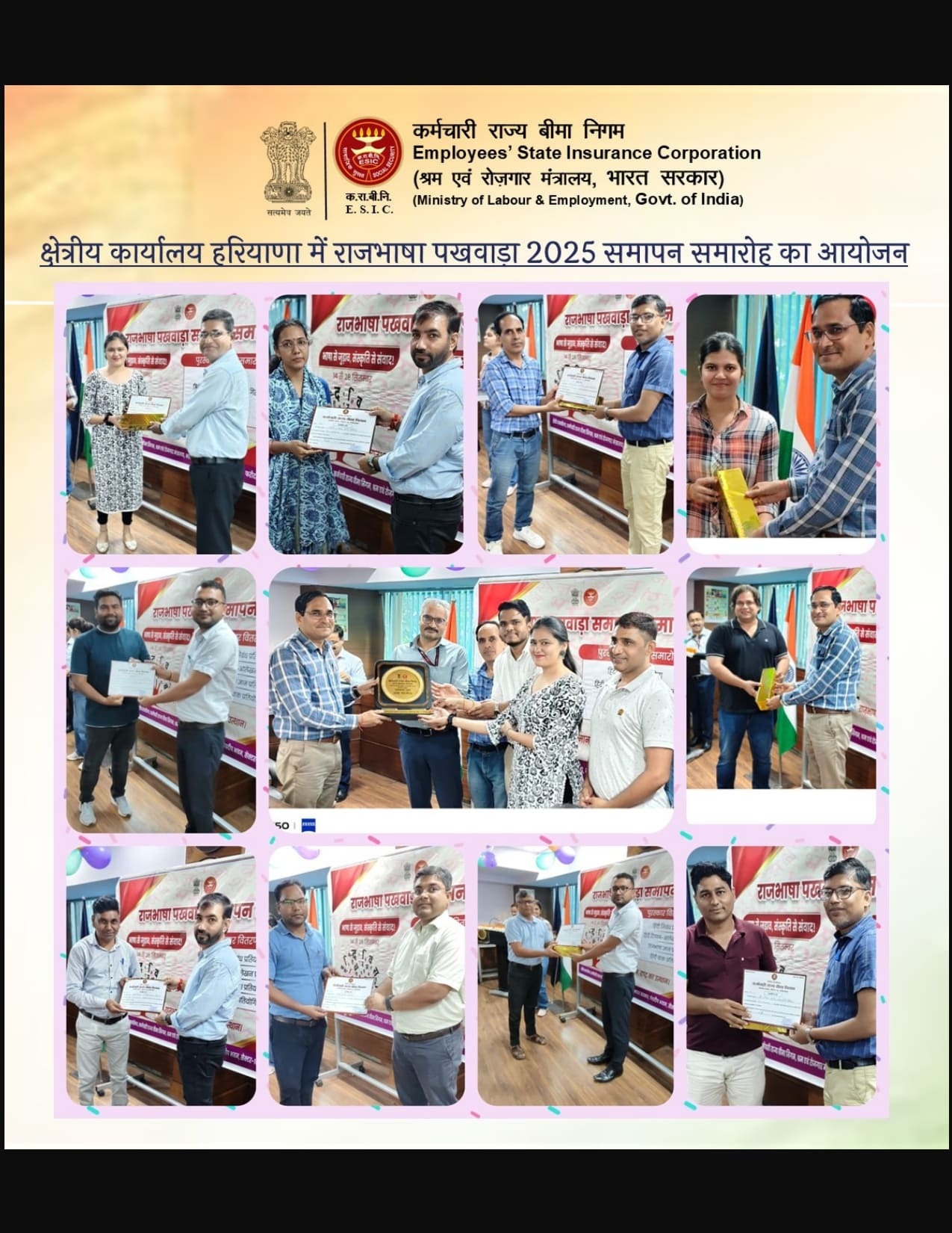 क्षेत्रीय कार्यालय, फ़रीदाबाद में राजभाषा पखवाड़ा 2025 समापन समारोह का आयोजनराजभाषा पखवाड़ा 2025 के अंतर्गत आयोजित निबंध प्रतियोगिता दिनांक 18.09.25
