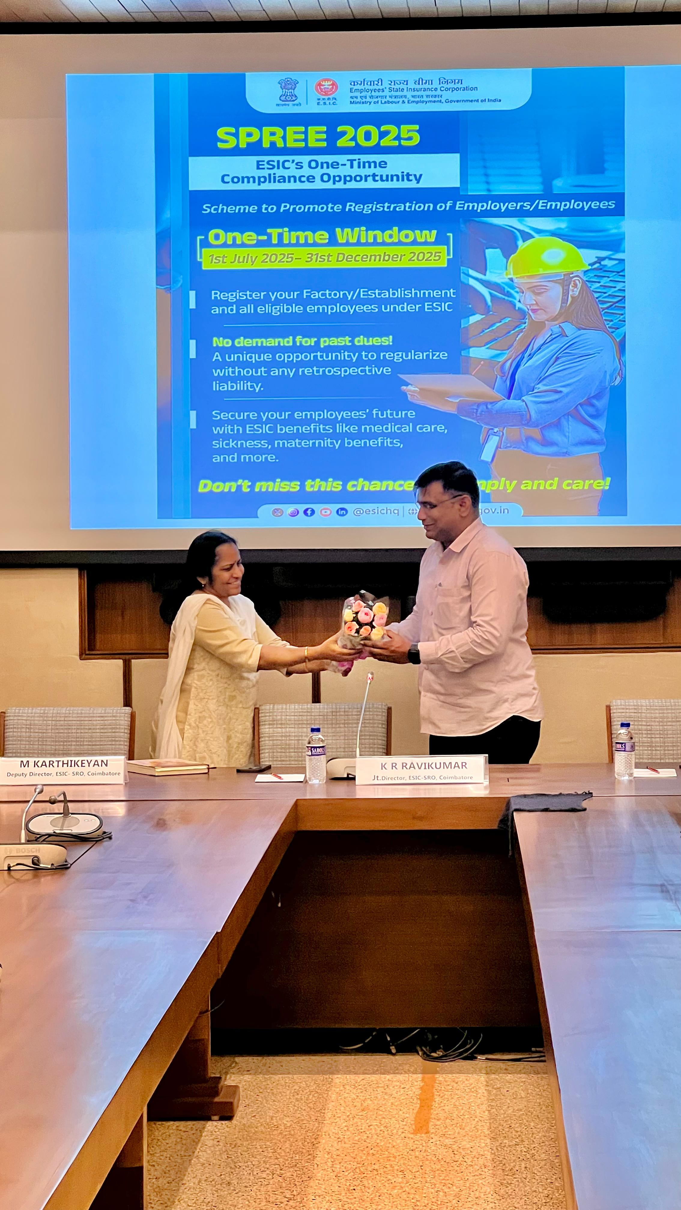 SPREE awareness meeting held at Southern India Mills Association- SIMA, Coimbatore on 03/09/2025