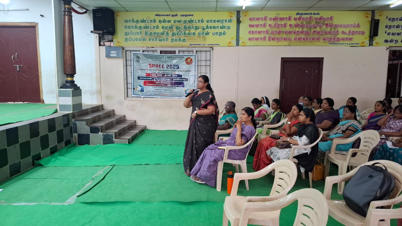 SPREE Awareness meeting at Vikas Vidyalaya for CBSE and ICSE schools addressed by Smt Nithya, BM Tiruppur.