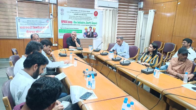 Photo Gallery - क्षेत्रीय कार्यालय, बद्दी द्वारा दिनांक 31.07.2025 को DRDA Conference Hall, धर्मशाला जिला काँगड़ा में कर्नल मंजीत कटोच, क्षेत्रीय निदेशक की अध्यक्ष्ता में SPREE य़ोजना(Scheme to Promote Registration of Employers/Employees) के संबंध में जागरुकता शिविर का आयोजन किया गया।