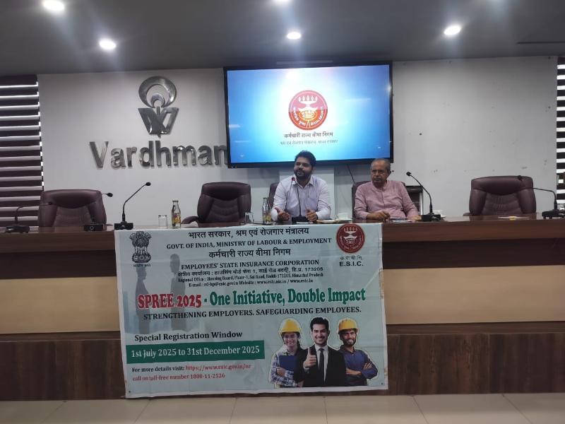 Photo Gallery - ESIC क्षेत्रीय कार्यालय, बद्दी द्वारा दिनांक 28.08.2025 को श्री करनपाल सिंह, उप-निदेशक की अध्यक्षता में SPREE योजना (Scheme to Promote Registration of Employers and Employees) के संबंध में जागरूकता शिविर का आयोजन BBNIA के conference Hall, बद्दी जिला सोलन में किया गया।