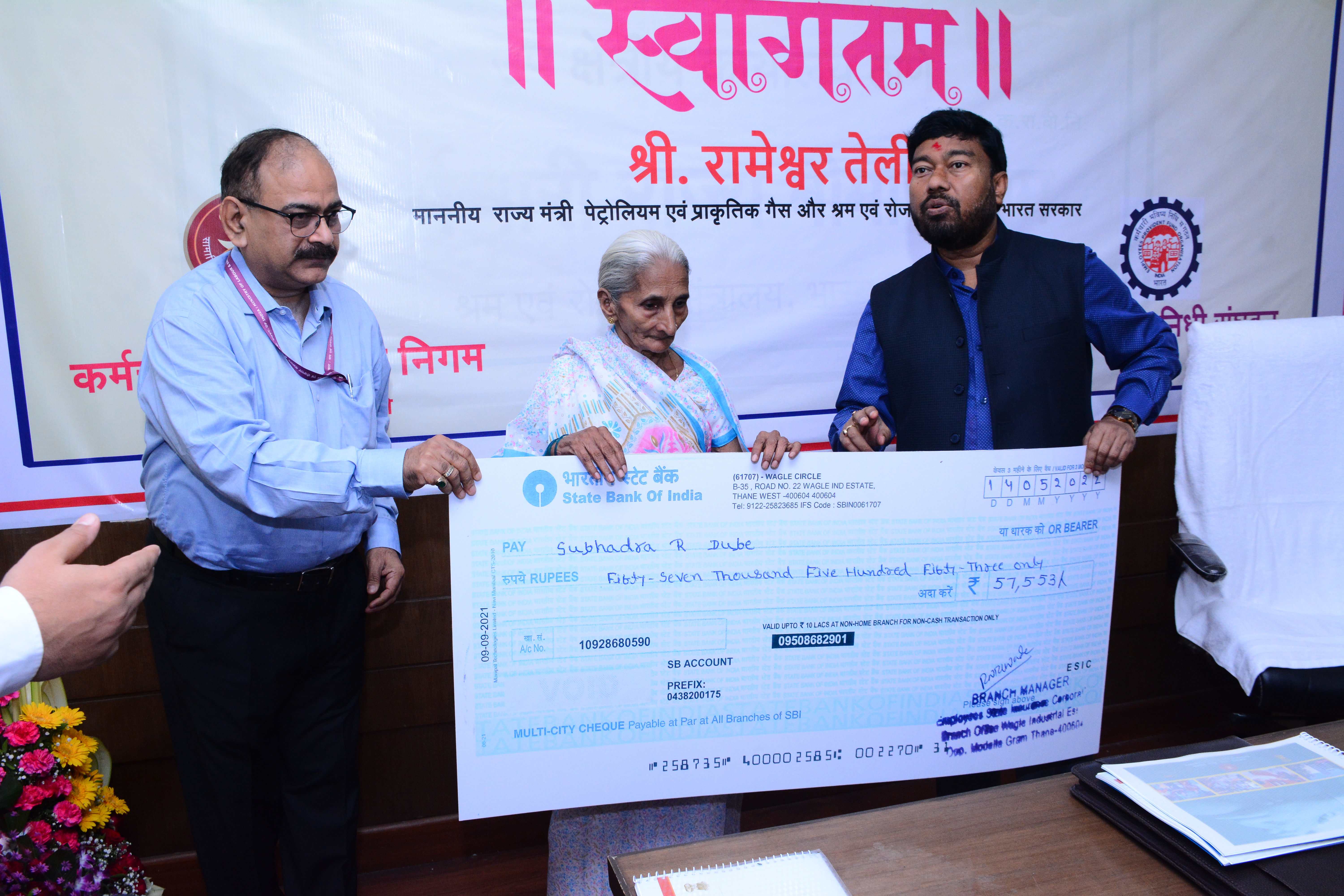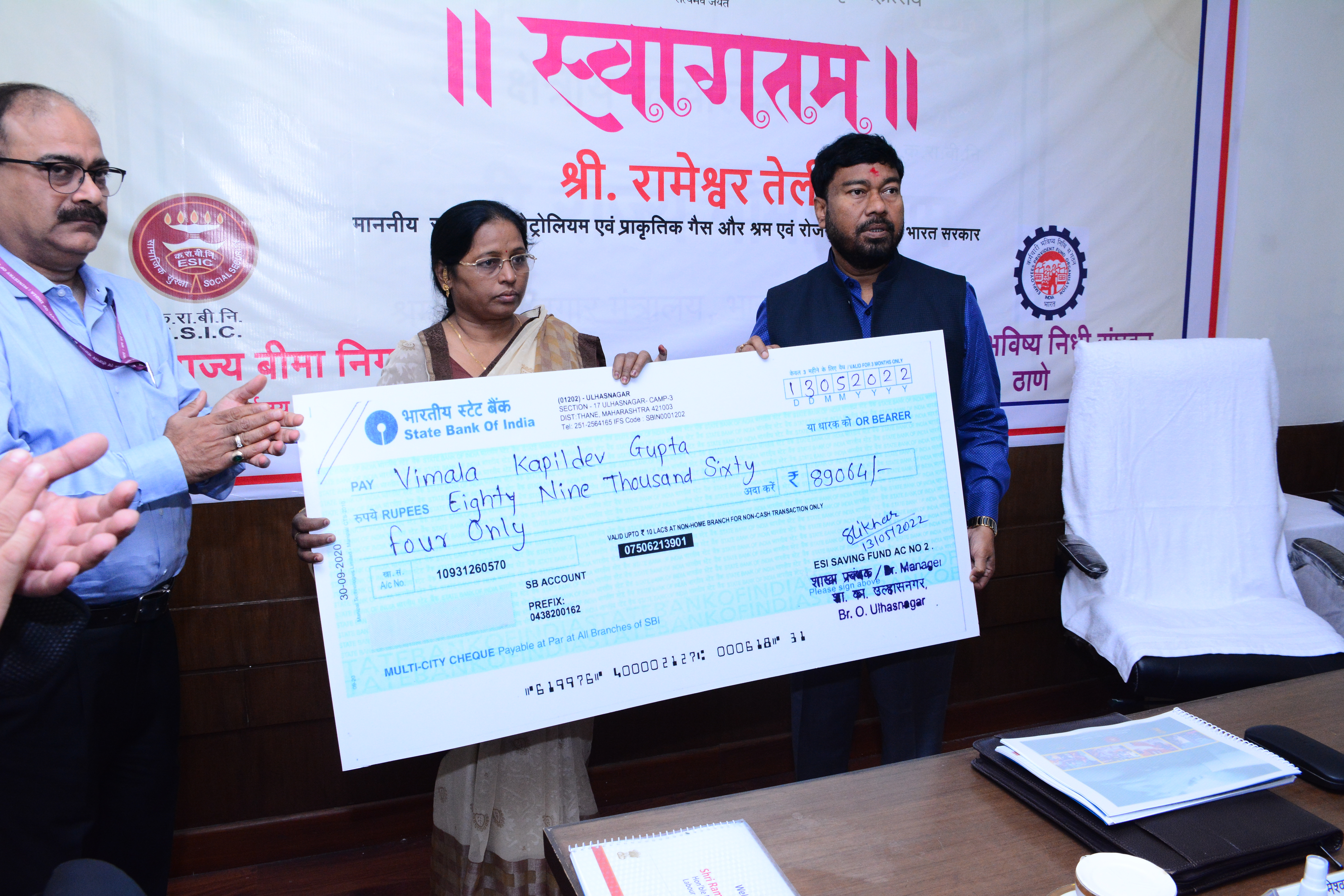 Visit of Shri. Rameswar Teli, Honble Minister of State in the ministry of Petroleum and Natural Gas and Minister of State in the Ministry of Labour and Employment, Government of India to ESIC Office, SRO Thane on 15.05.2022