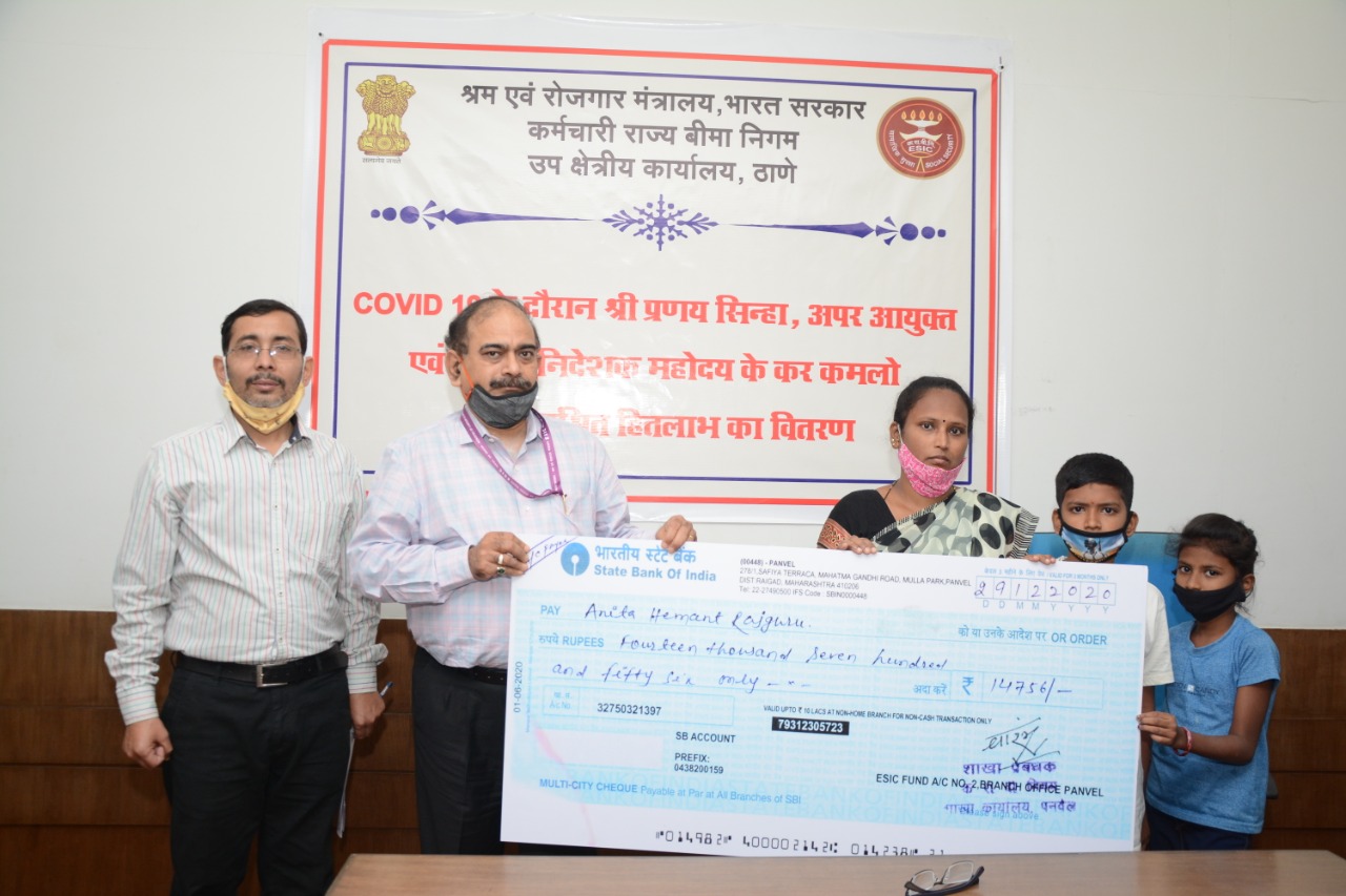 Disbursement of Payment of Dependent Benefit by Shri. Pranay Sinha, Addl. Commissioner and Regional Director at ESIC SRO Thane on 30.12.2020