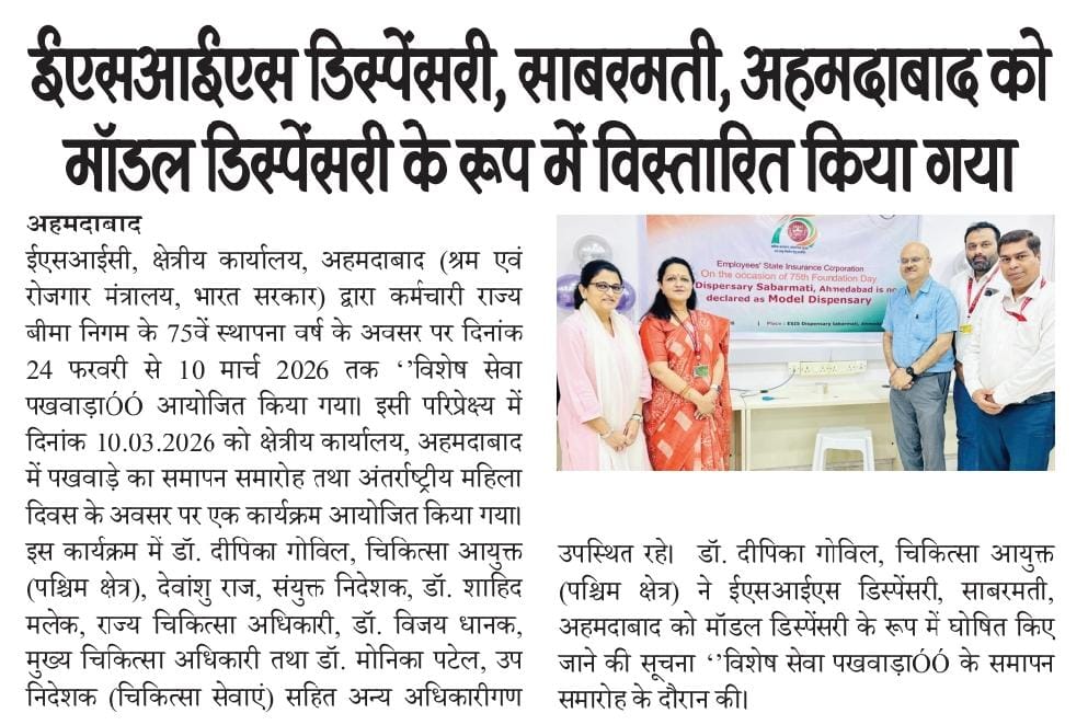 ईएसआईएस डिस्पेंसरी, साबरमती, अहमदाबाद को मॉडल डिस्पेंसरी के रूप में विस्तारित किया गया size:()PDF IconPublish Date: 11/03/2026