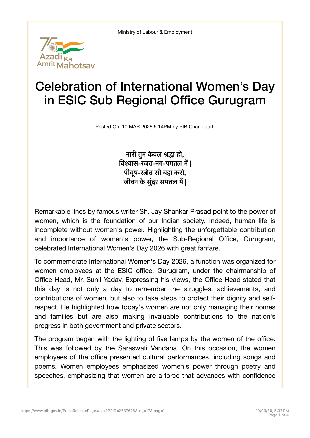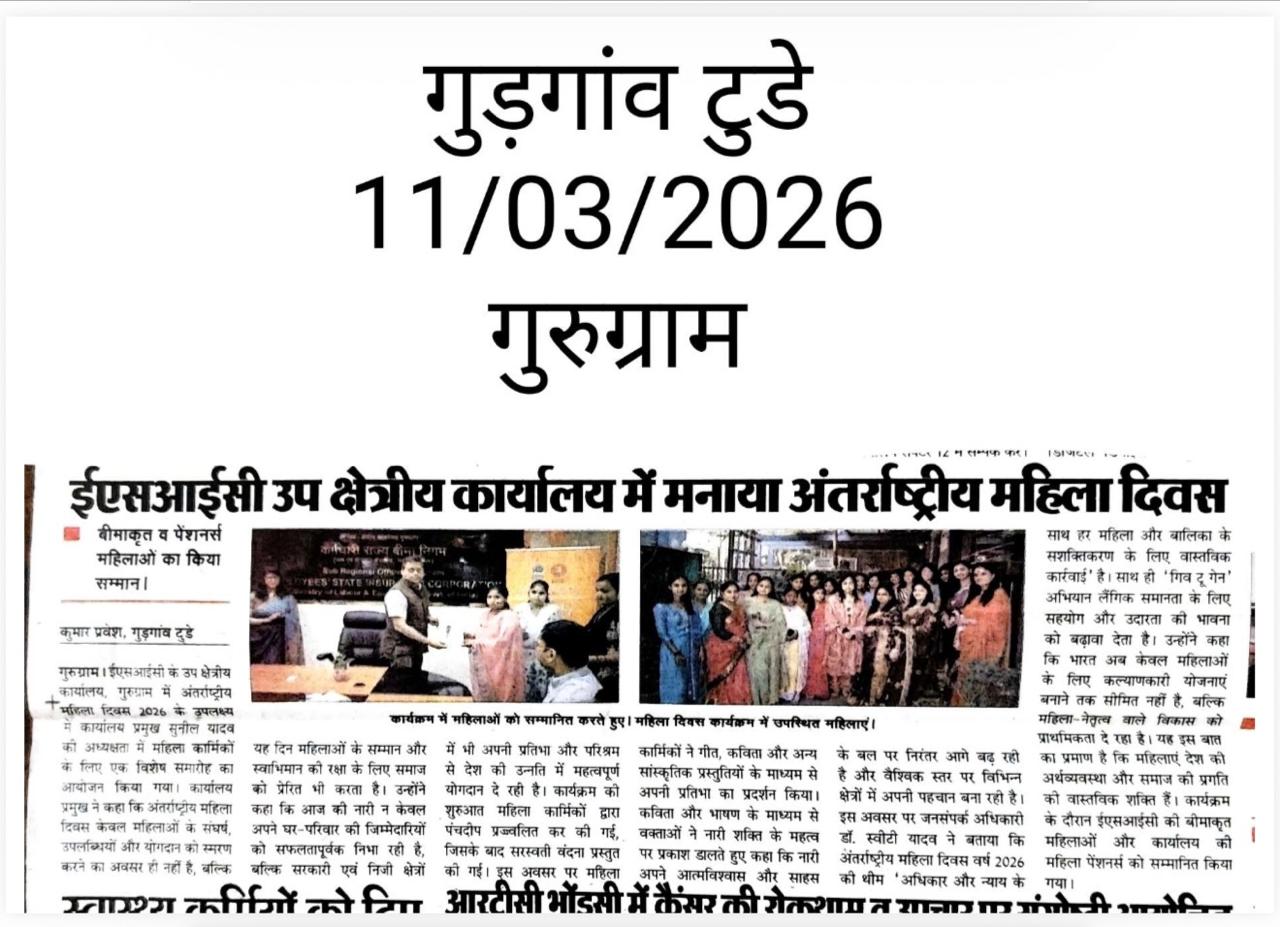 Celebration of International Women's Day in ESIC SRO Gurugram size:(319.77 KB)PDF IconPublish Date: 17/03/2026