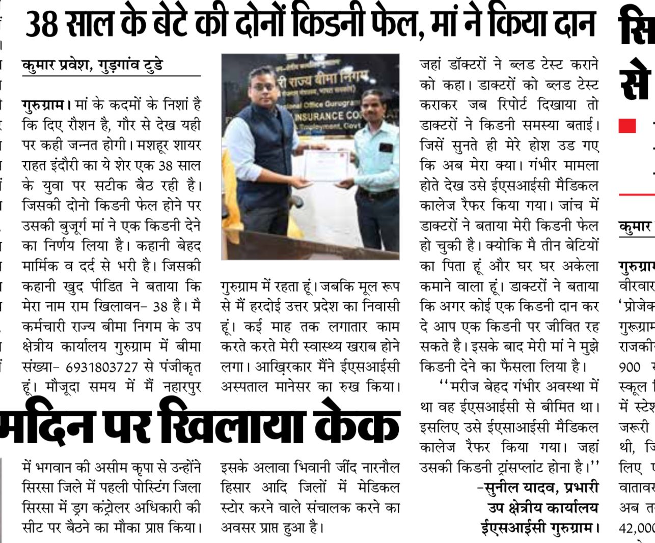 38 साल के बेटे की दोनों किडनी फ़ैल, माँ ने किया दान size:(200.35 KB)