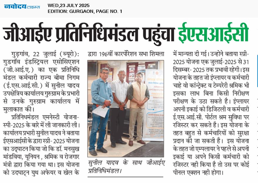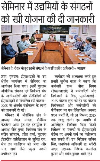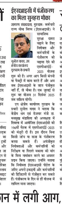 दैनिक जागरण-दिनांक 23.07.2025- ईएसआईसी ने सामाजिक सुरक्षा कवरेज विस्तार करने को नियोक्ताओ व कर्मचारियों के पंजीकरण को बढ़ावा देने की योजना SPREE 2025 शुरू की। size:()
