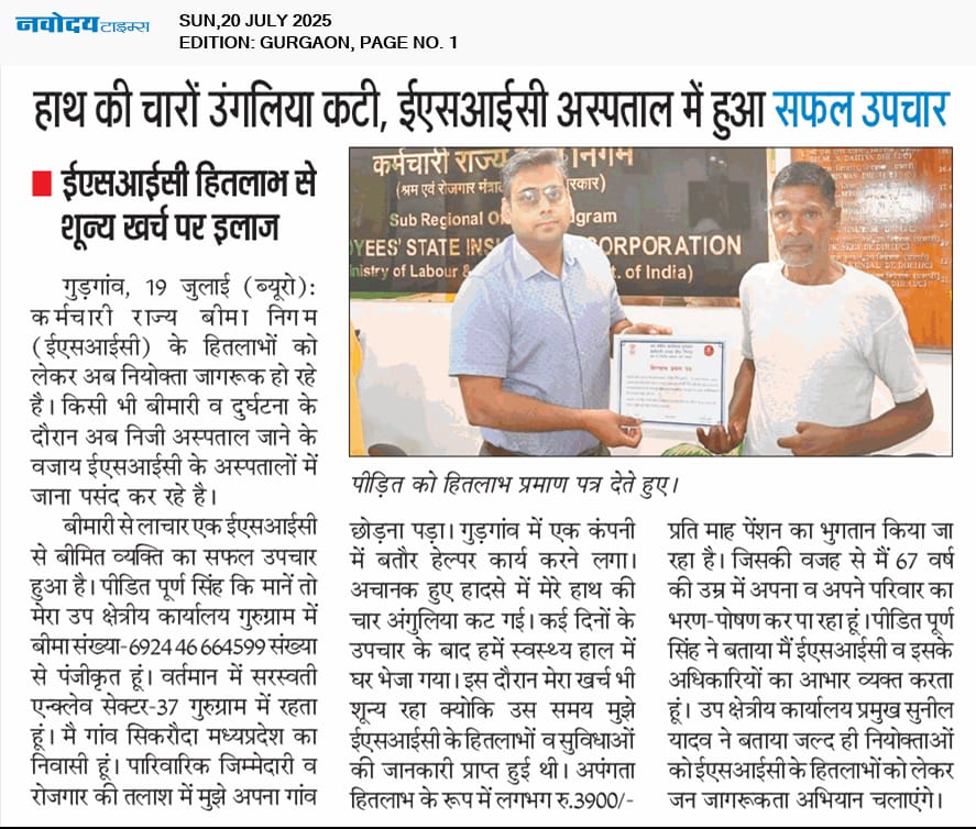 कंपनी में कटी हाथ की चार अगुलियां, ईएसआईसी बना सहारा size:(122.94 KB)