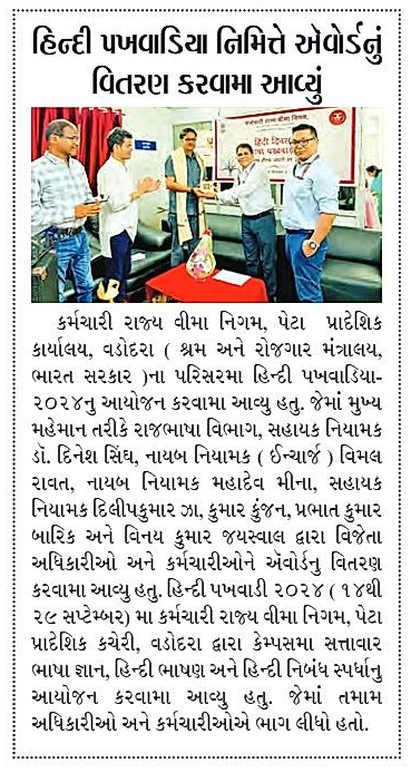 उप क्षेत्रीय कार्यालय वड़ोदरा में हिंदी पखवाडा समापन समारोह का आयोजन size:()