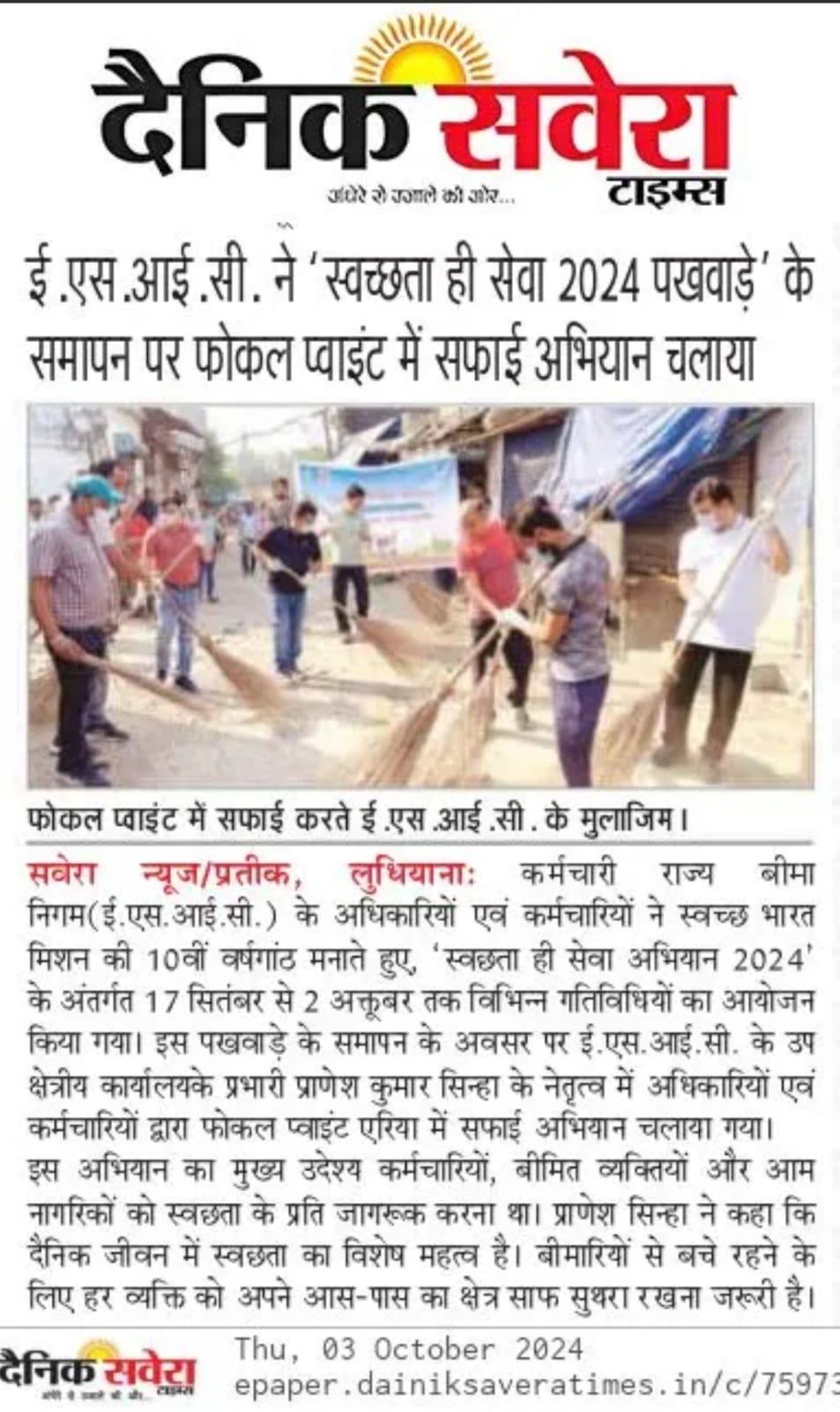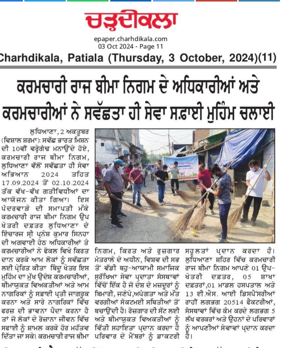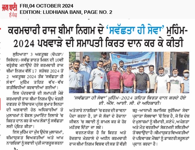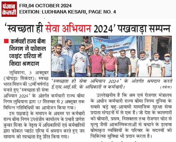स्वछता ही सेवा अभियान 2024” के अंतर्गत दिनांक 17.09.2024 से 02.10.2024 तक उप क्षेत्रीय कार्यालय, लुधियाना द्वारा किया गया विभिन्न गतिविधियों का आयोजन। size:()