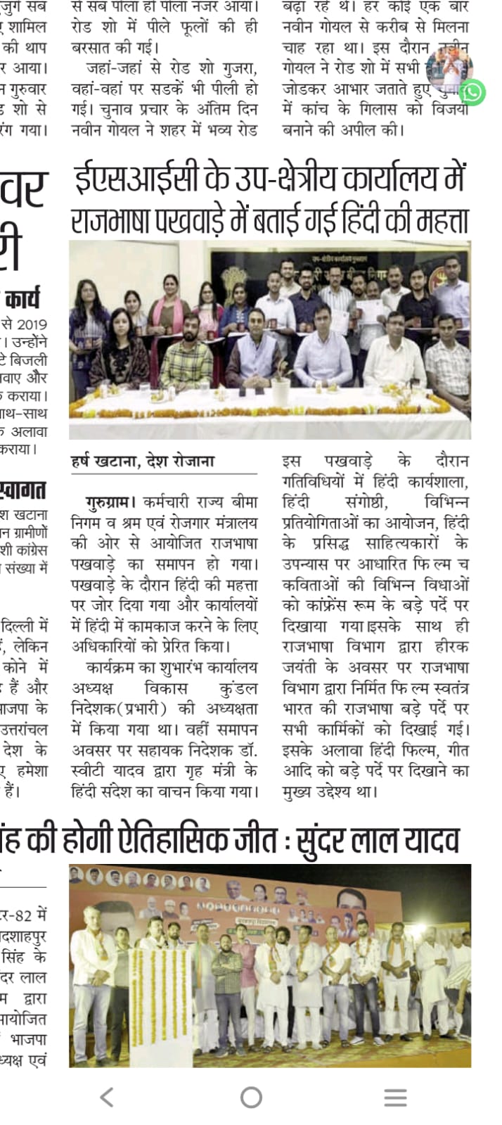 ईएसआईसी के उप क्षेत्रीय कार्यालय गुरुग्राम में राजभाषा पखवाड़ा 2024 में बताई गई हिंदी की महत्ता size:(160.99 KB)