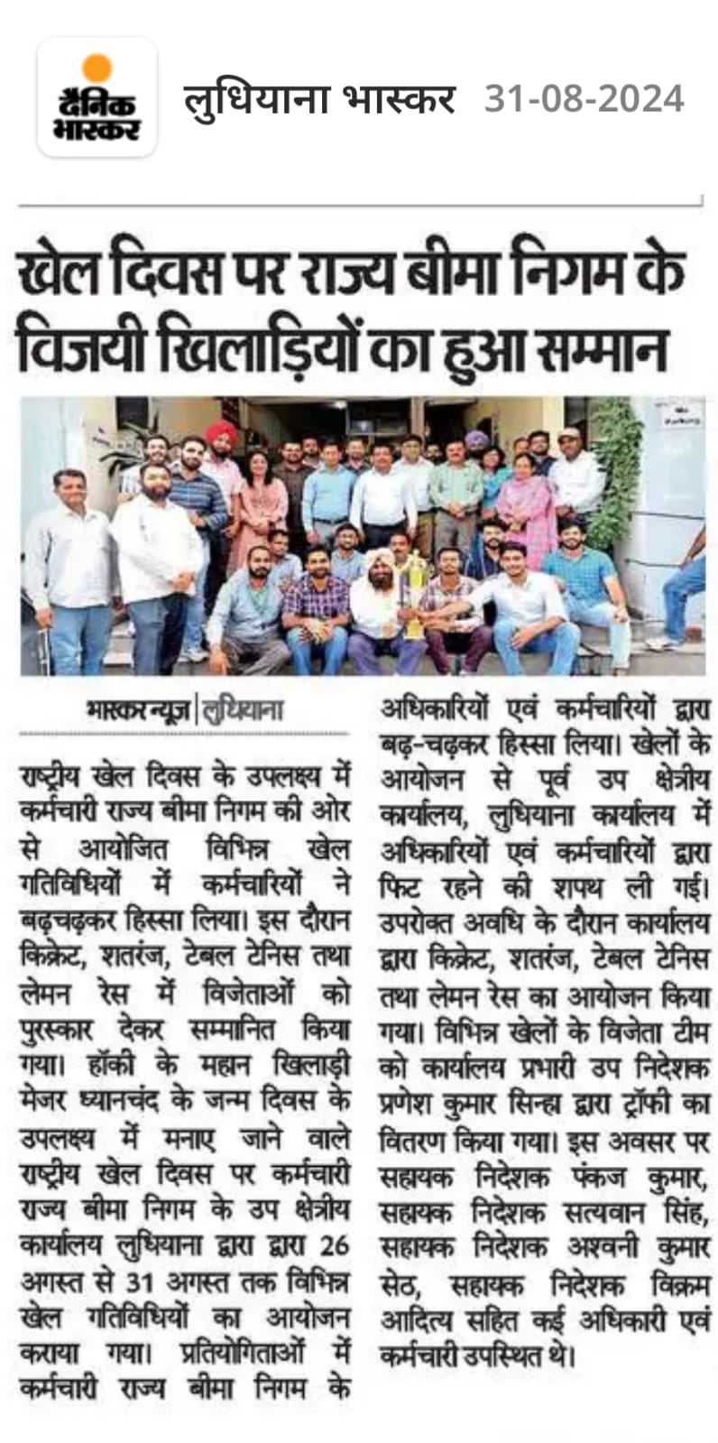कर्मचारी राज्य बीमा निगम द्वारा राष्ट्रीय खेल दिवस के उपलक्ष्य में विभिन्न खेल गतिविधियों का आयोजन size:(18.28 KB)