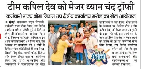 उप क्षेत्रीय कार्यालय मरोल में राष्ट्रीय खेल दिवस के अवसर पर विभिन्न खेलों के आयोजन की जानकारी नवभारत वृतपत्र में प्रकाशित size:()