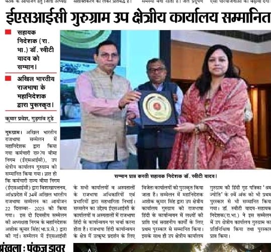 सहायक निदेशक डॉ0 स्वीटी यादव (रा.भा.) को मिला सम्मान size:(319.68 KB)
