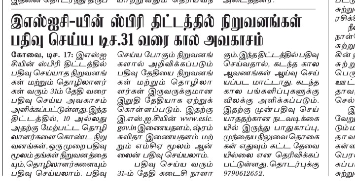 Scheme to Promote Registration of Employers/ Employees (SPREE-2025) - News published in Dinakaran& The Hindu dt 14.12.2025 size:(288.73 KB)