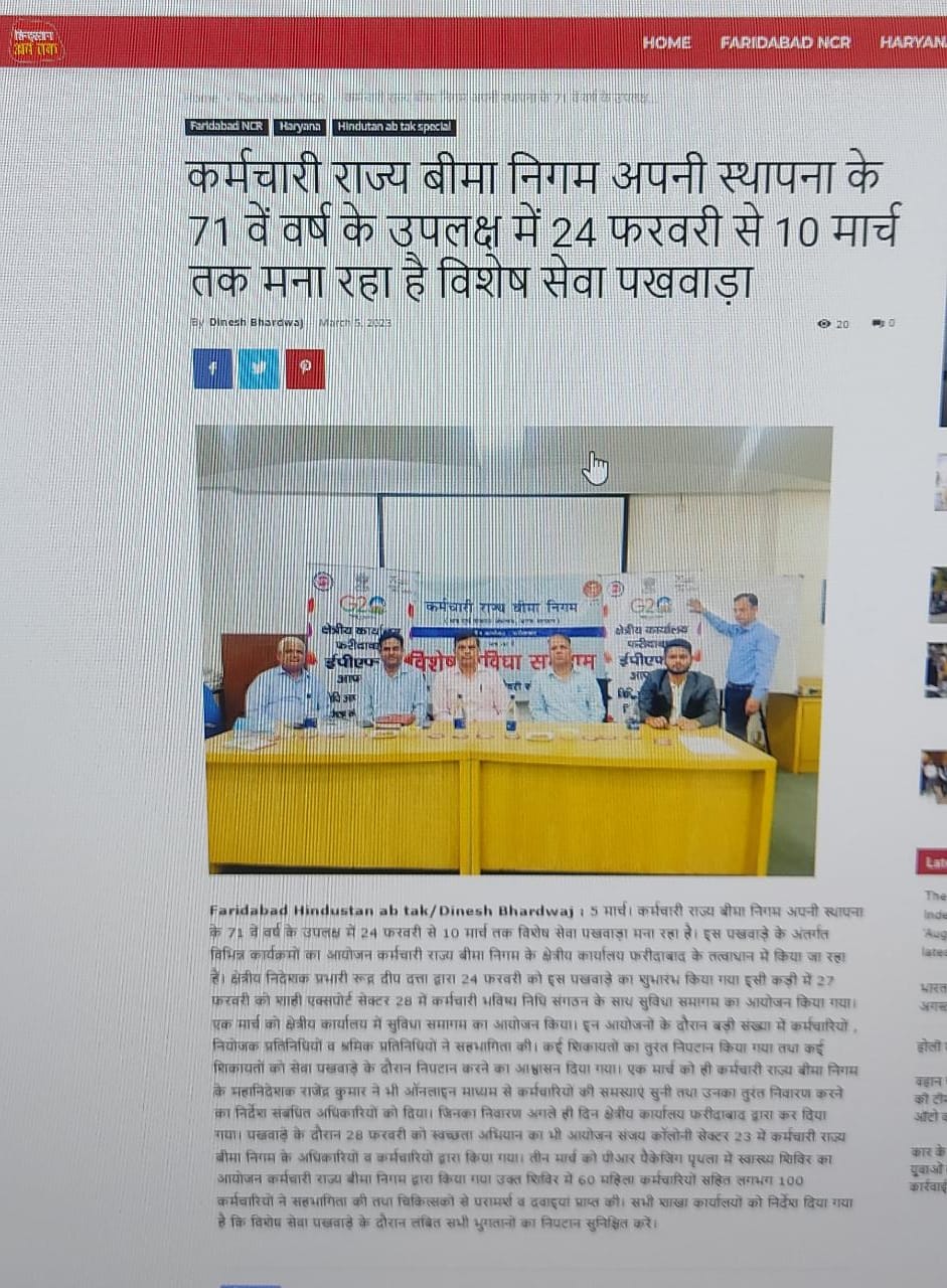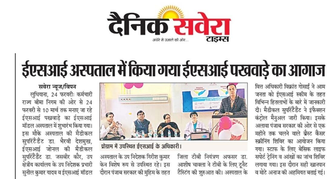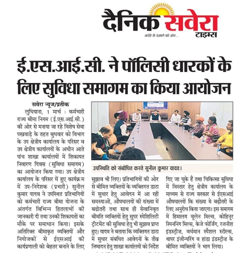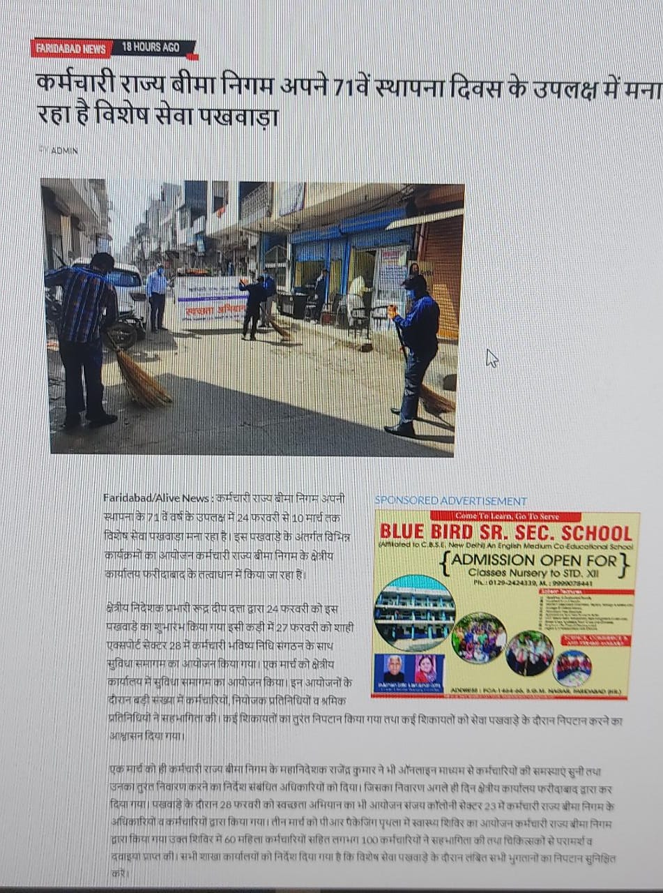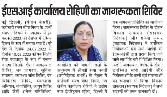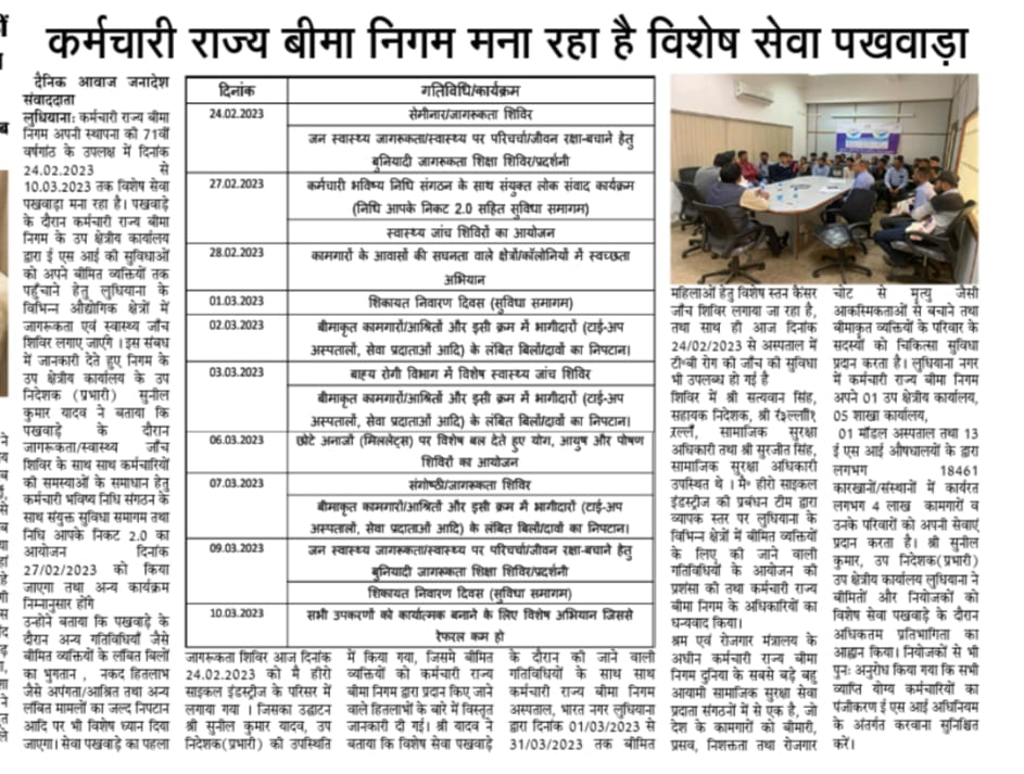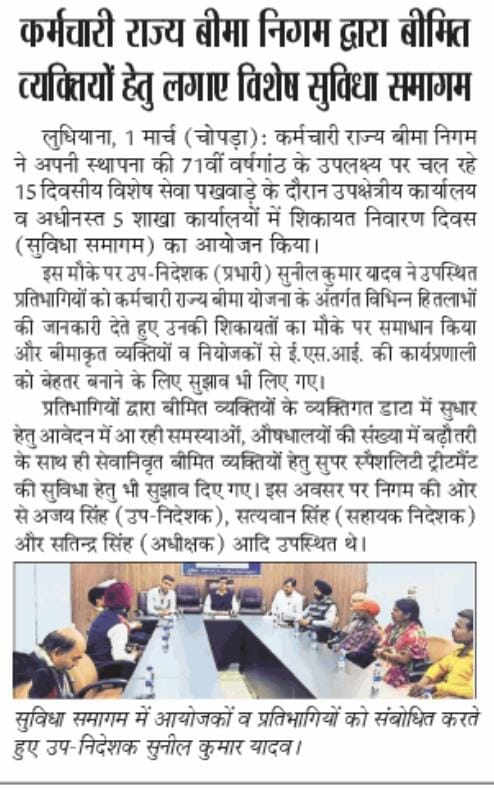 कर्मचारी राज्य बिमा निगम द्वारा 71वीं वर्षगांठ के उपलक्ष्य में 24 फरवरी से 10 मार्च तक विशेष सेवा पखवाडा का आयोजन size:()