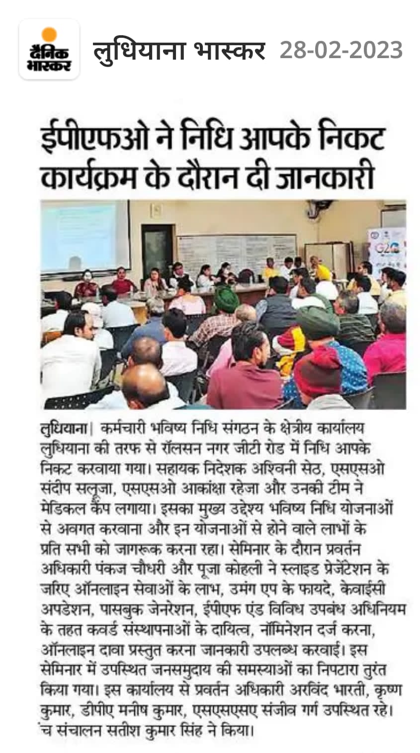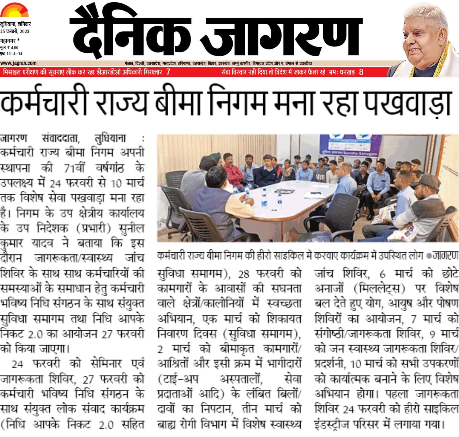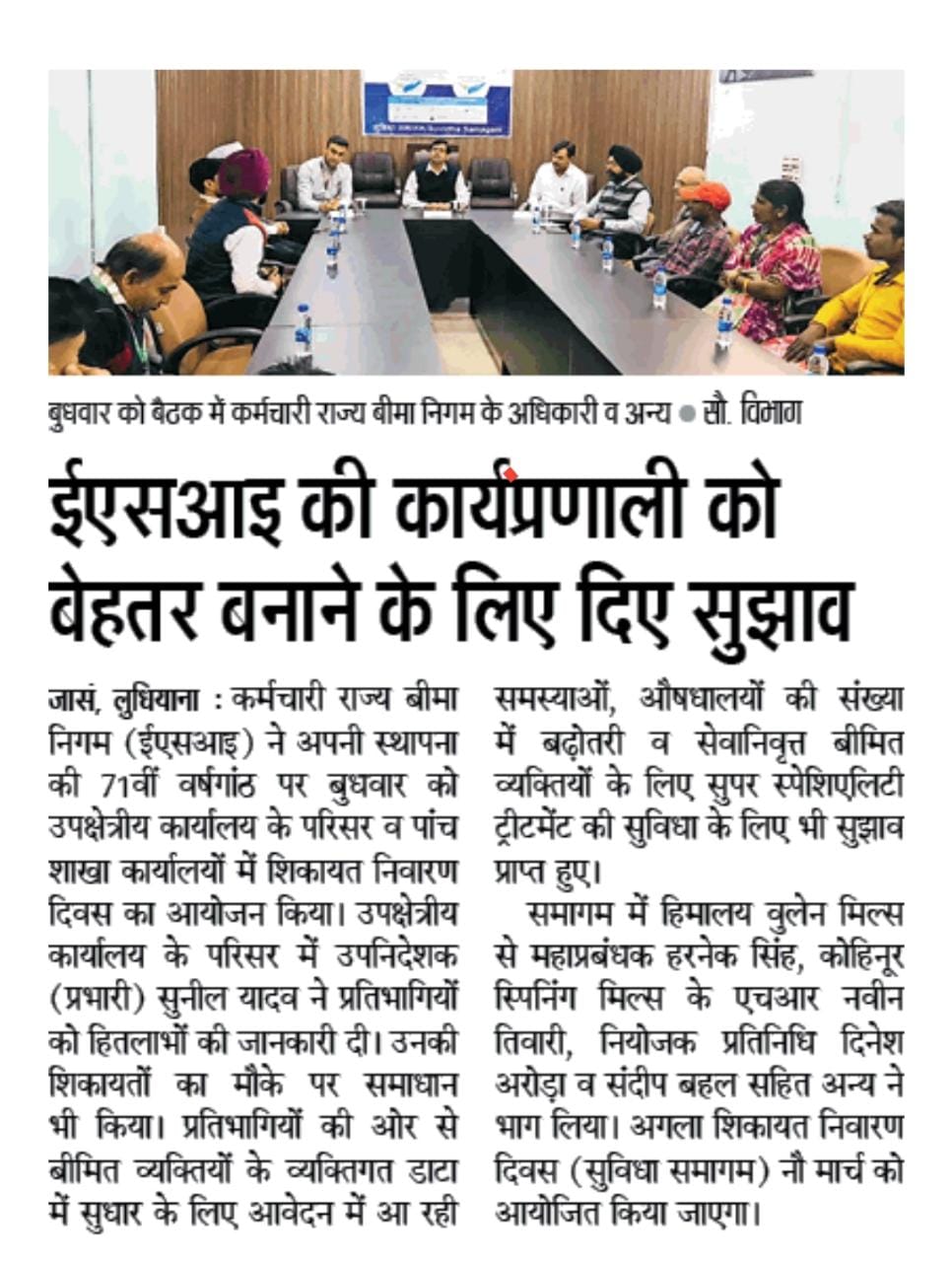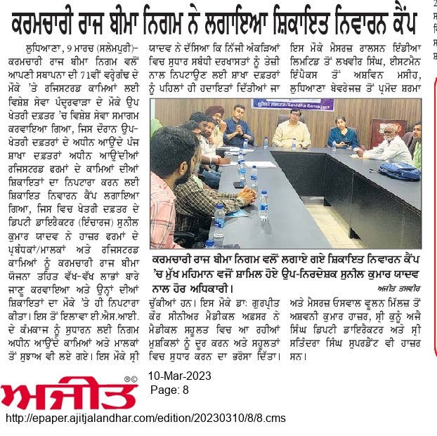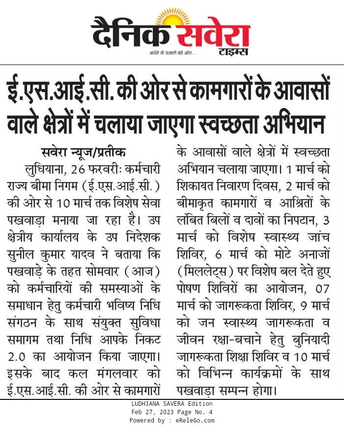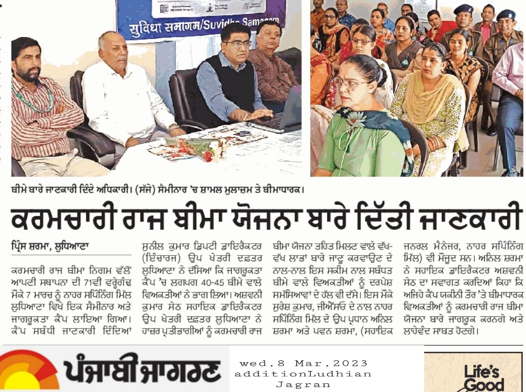 कर्मचारी राज्य बिमा निगम द्वारा 71वीं वर्षगांठ के उपलक्ष्य में 24 फरवरी से 10 मार्च तक विशेष सेवा पखवाडा का आयोजन size:()