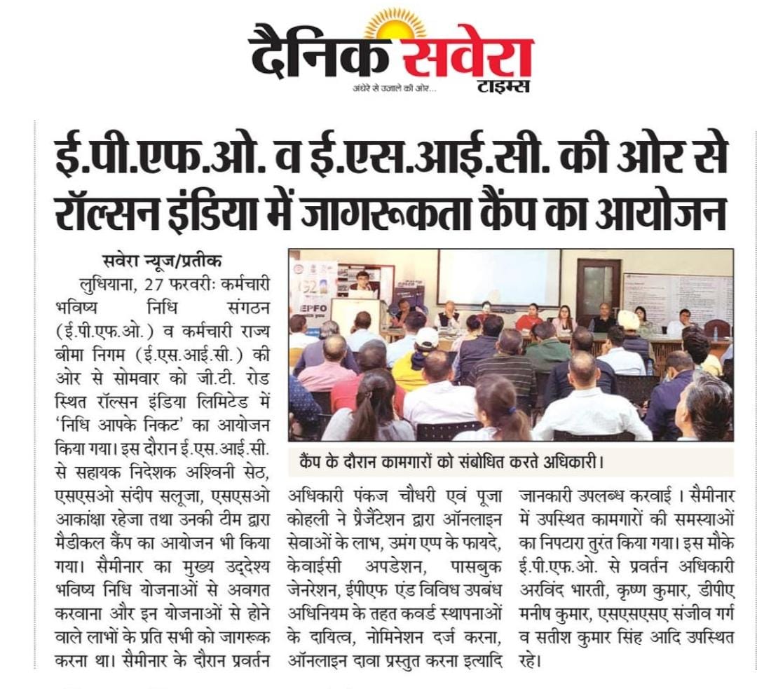 कर्मचारी राज्य बीमा निगम द्वारा विशेष सेवा पखवाड़े के दौरान लगाया गया सेमिनार एवं जागरूकता शिविर। size:()