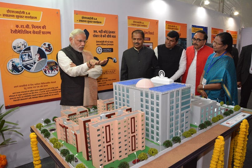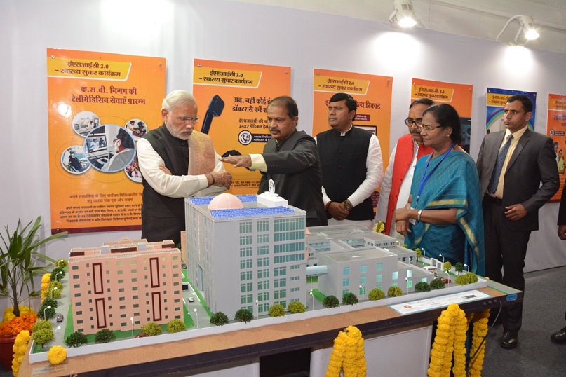 माननीय प्रधानमंत्री श्री नरेन्द्र मोदी द्वारा वाराणसी में 150 शैय्या युक्त ईएसआईसी सुपर स्पेशिएलिटी अस्पताल का शिलान्यास। size:(49.79 KB)