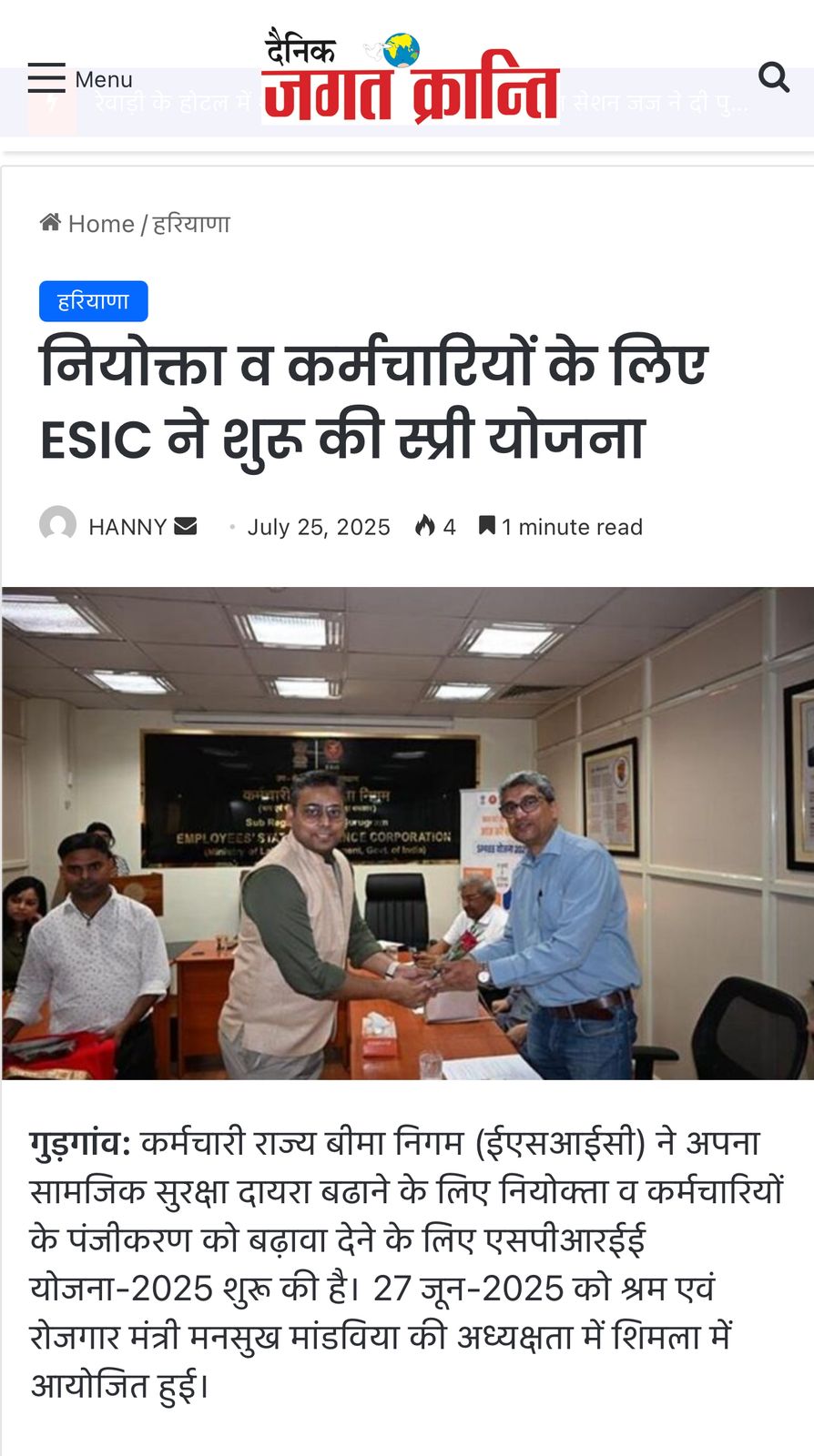 SRO Gurugram drives awareness on ESIC's SPREE-2025 initiative size:(425.45 KB)